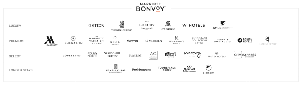 マリオット系ホテルには次のようなブランドがあります。