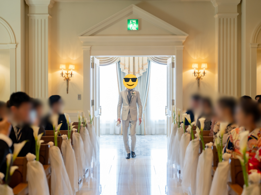そこでは、親族やゲストの入場を、