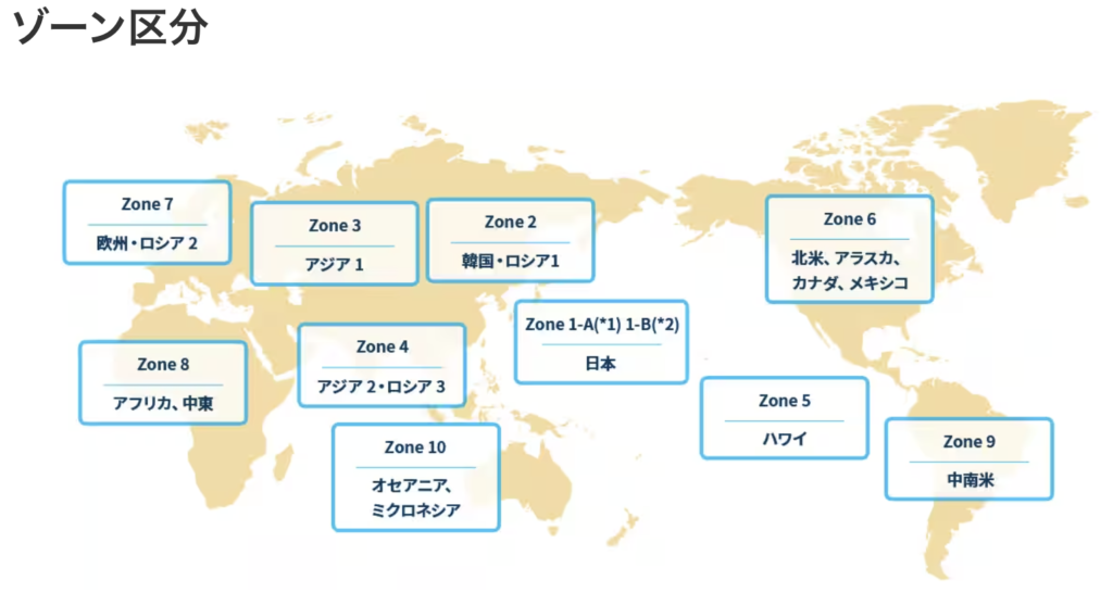 渡航先ごとに「ゾーン」が設定されており、