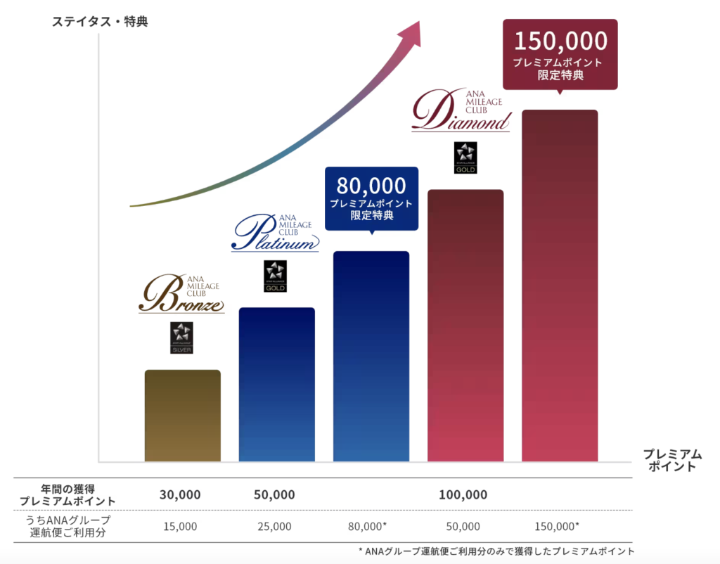 ANAは「プレミアムポイント(PP)」で判定されます。