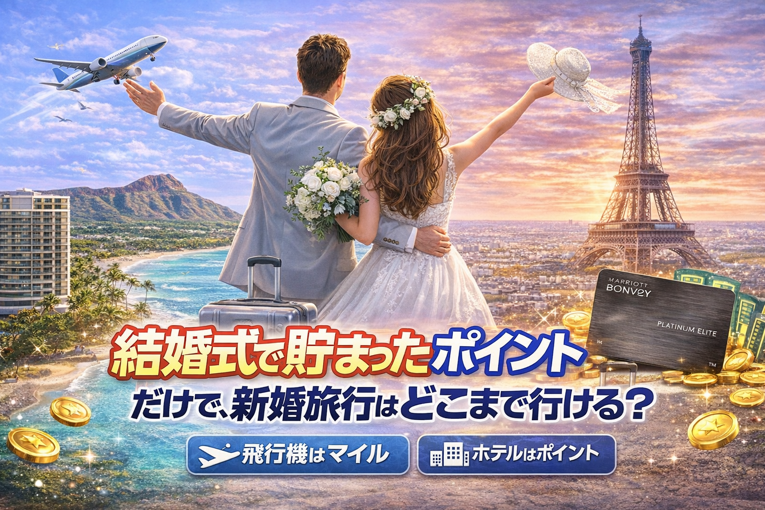 マリオット攻略 結婚式費用600万円で貯まったポイントだけで、新婚旅行はどこまで行ける?|飛行機はマイル、ホテルはポイント
