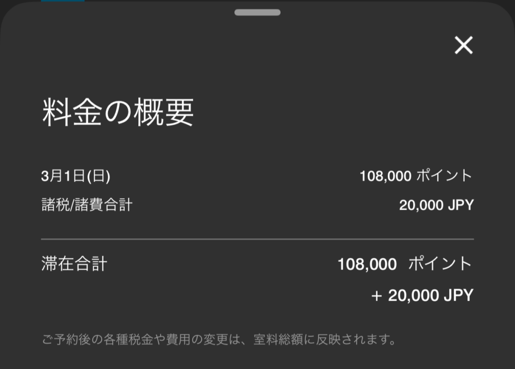 マリオットボンヴォイのポイント(108,000pt)を利用しました。
